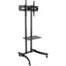 A height-adjustable shelf mounted below the display holds various audio/video components, such as a Blu-ray player, laptop, webcam, cable box, DVR or video game system. The shelf measures 11 x 19 inches and supports up to 22 pounds.